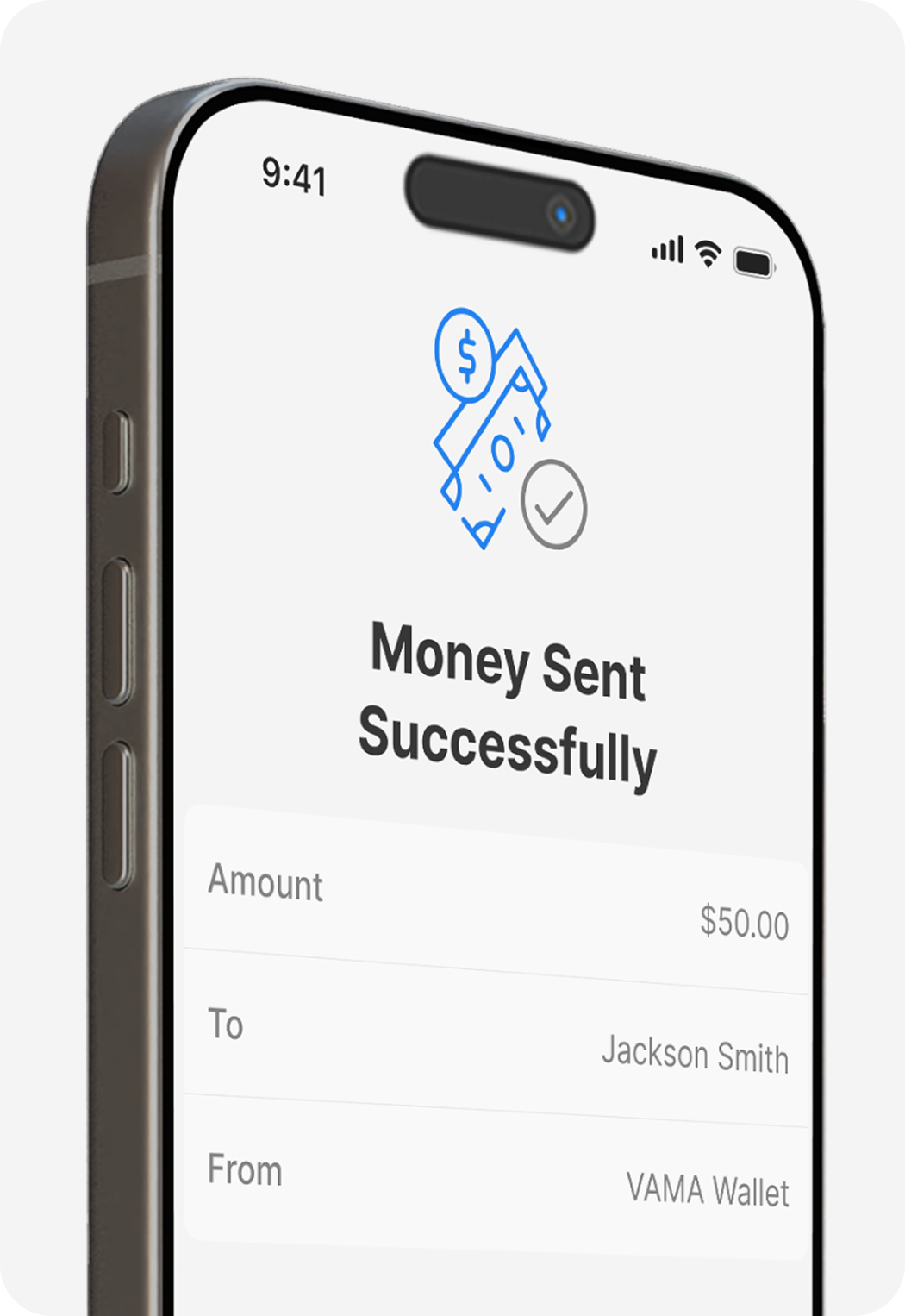 Vama is in the process of integrating with licensed financial institutions. Peer-to-peer payments are currently in limited U.S. testing; full rollout pending licensed integration.
